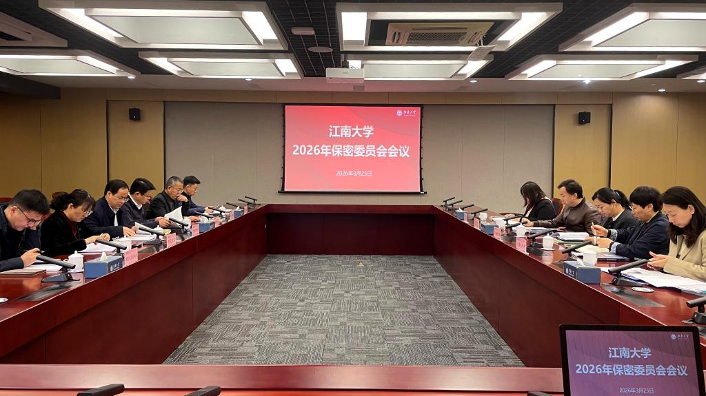 3月25日上午,江南大学2026年保密委员会会议在行政楼B307会议室举行。校保密委员会委员、保密工作办公室人员出席了会议。会议由校保密委员会副主任、党政办公室主任兼保密工作办公室主任王维主持。